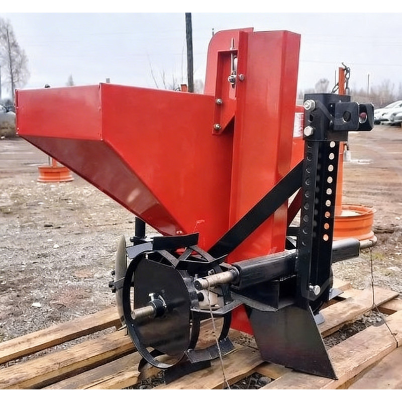 Картофелесажалка КС-1МТ малогабаритная (бункер 90 л, до 55 кг картофеля) для мини-тракторов предназначена для точной посадки семенного картофеля с одновременной заделкой в почву и формированием гребня.